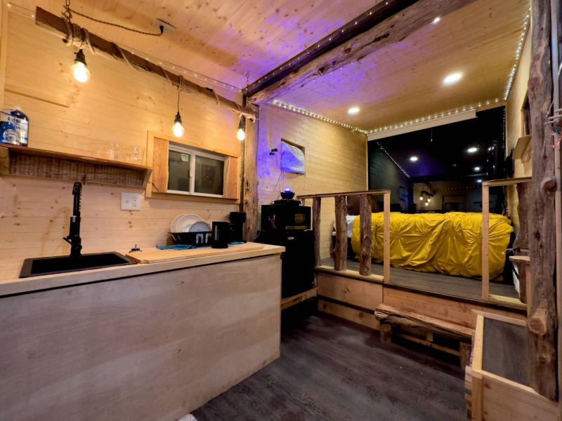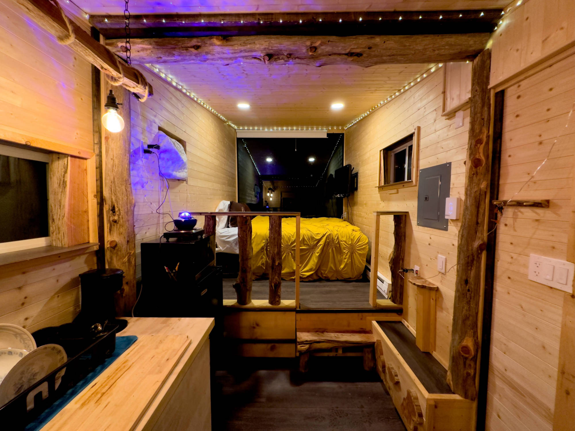 This is a Its a 144 sqft tiny house on wheels, located in a large 8 acre, mostly wooded property. While there is a main cabin about 100 feet away, It is quite secluded and you will have your very private deck and a outdoor fireplace for making smores.
